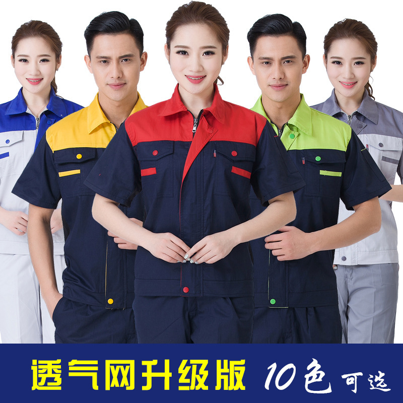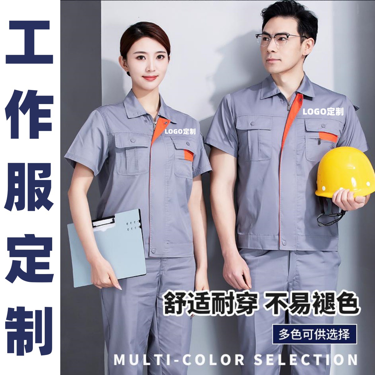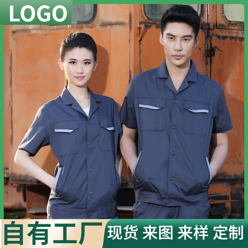 Pakaian kerja disesuaikan musim panas tahan aus tahan setelan lengan pendek perlindungan tenaga kerja perkakas pabrik Dekorasi bengkel cetak logo gambar kata