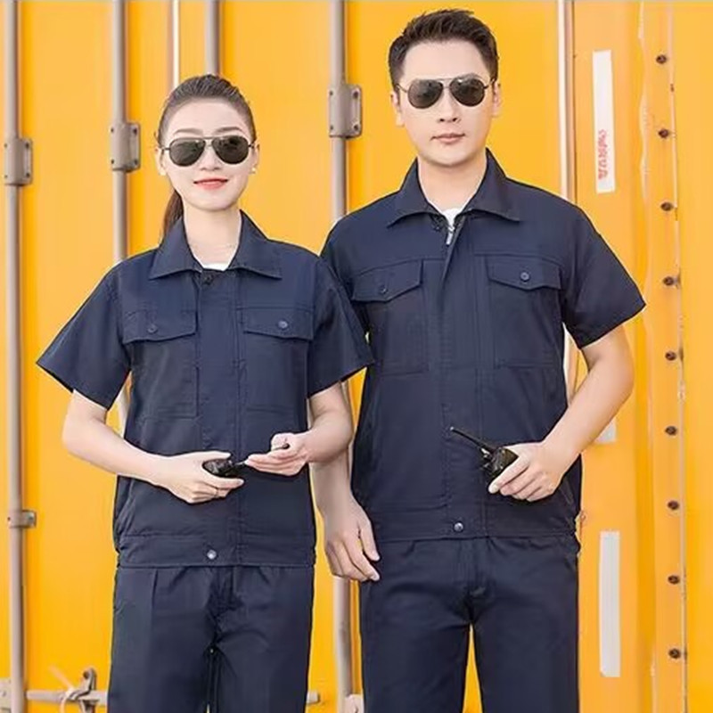 Setelan baju kerja lengan pendek, musim panas katun poliester tipis warna solid pakaian kerja lengan panjang perbaikan otomatis tahan aus pakaian kerja pabrik pakaian kerja pakaian pelindung tenaga kerja