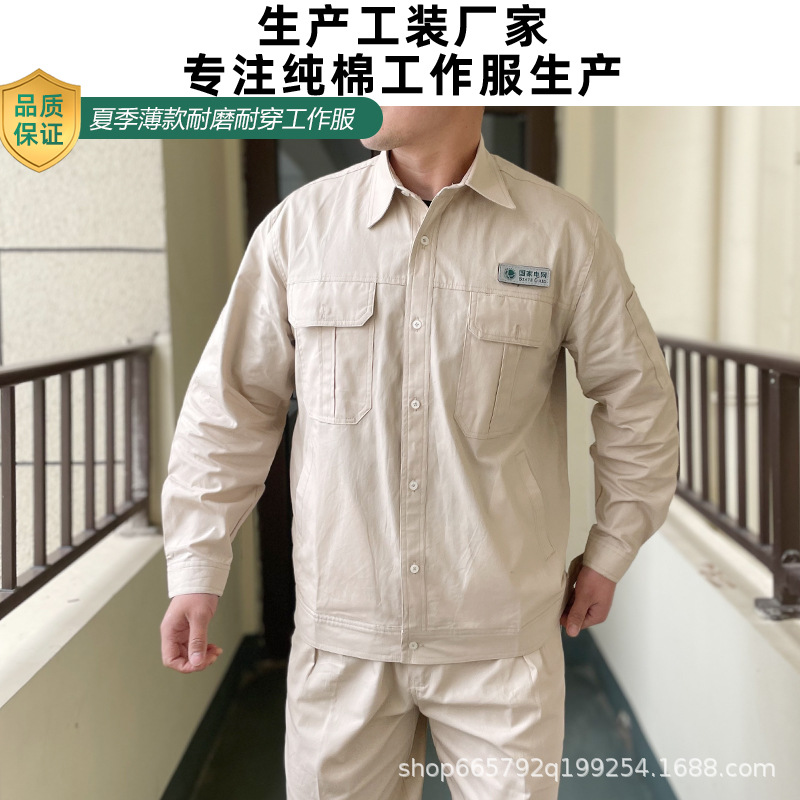 Pakaian kerja katun murni, pilihan ketat pakaian kerja, katun murni, pakaian pelindung kerja, lengan pendek, cetakan logo, anti statis, nyaman, musim panas