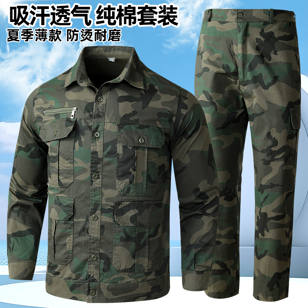 Setelan Pakaian Kerja Tipis Musim Panas Baju Atasan Pria Pakaian Perlindungan Tenaga Kerja Kamuflase Tahan Aus Pakaian Pekerja Perbaikan Otomatis Pakaian Kerja Lengan Panjang