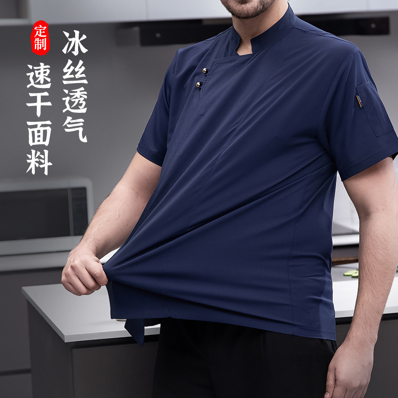 Pakaian koki cepat kering, baju koki pakaian khusus dapur makan bernapas es sutra lengan pendek musim panas