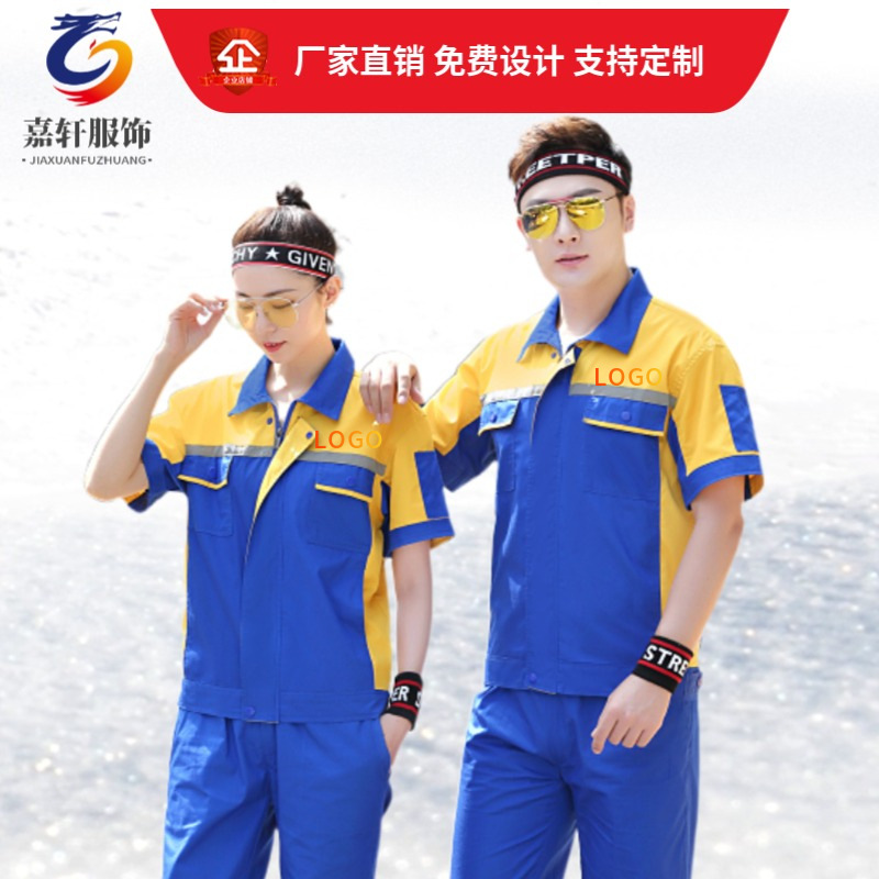 Setelan pakaian kerja pria, lengan pendek perbaikan mobil tipis pakaian bengkel pabrik pakaian perbaikan mesin