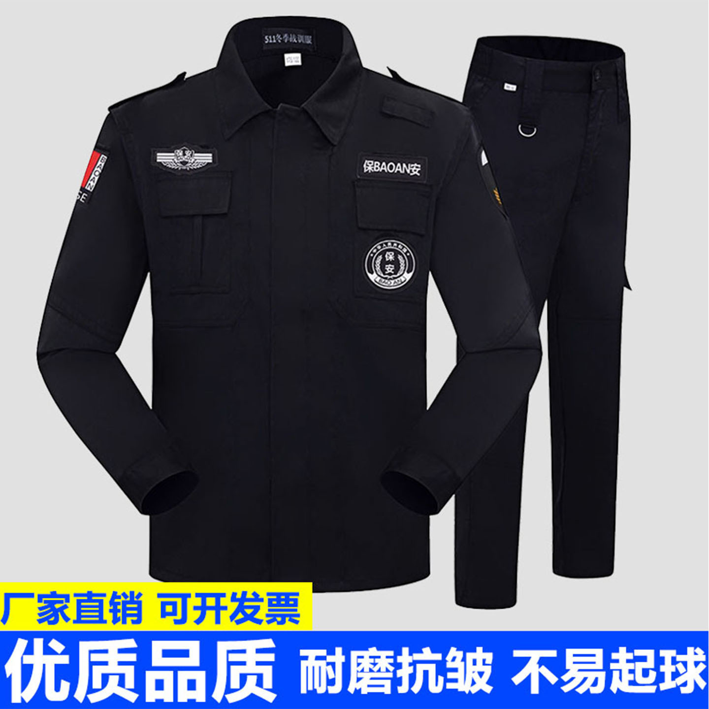 Xiangdun seragam keamanan grosir, seragam latihan musim semi dan musim gugur, seragam kerja latihan khusus warna hitam, seragam kerja lengan pendek musim panas