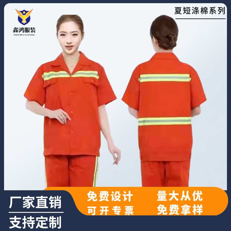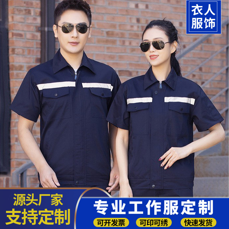 Pakaian Kerja Pakaian Kerja Pabrik Reflektif Lengan Pendek Katun Murni Model Tipis Musim Panas Pakaian Pria Tahan Aus Tahan Kotor Bordir Cetak