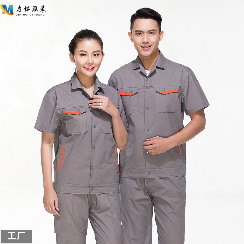 Setelan pakaian kerja pria, lengan panjang musim panas pakaian kerja bengkel pabrik pakaian properti pakaian kerja perbaikan otomatis pakaian perlindungan tenaga kerja besi lengan pendek