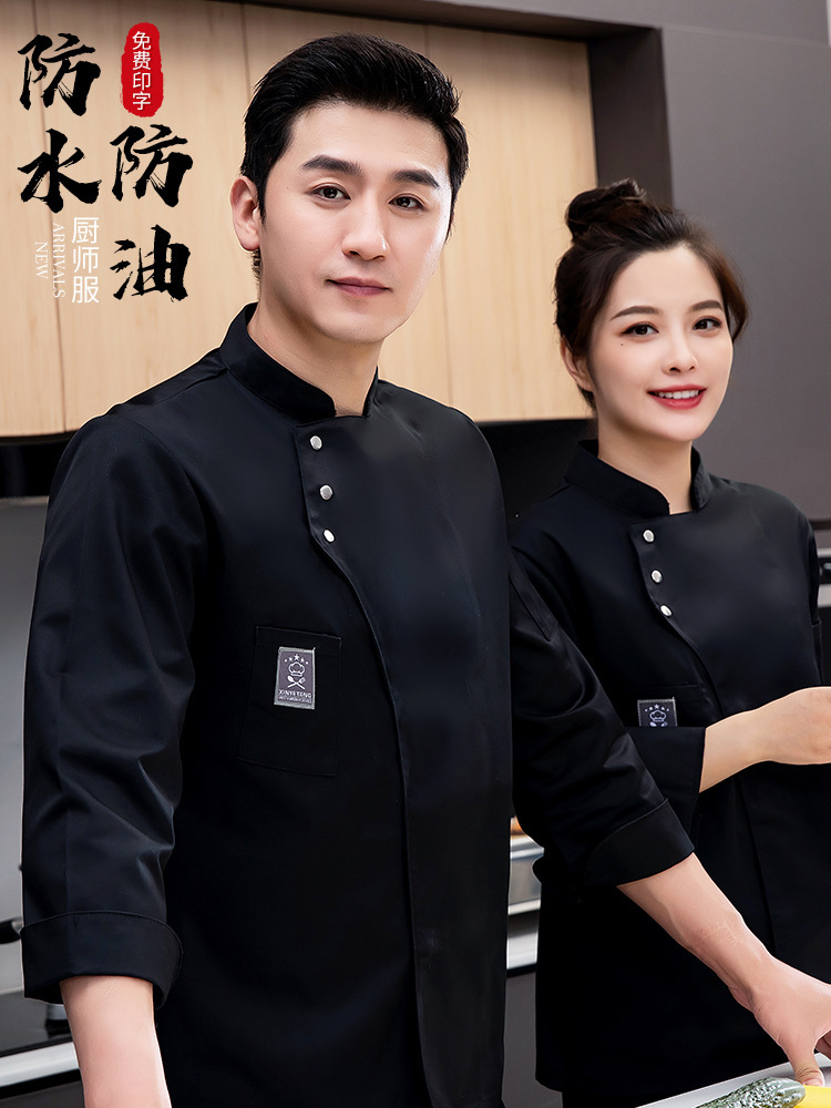 Baju kerja koki katering pria, pakaian kerja lengan panjang musim gugur dan musim dingin hotel restoran katering toko kue khusus tahan minyak tahan air