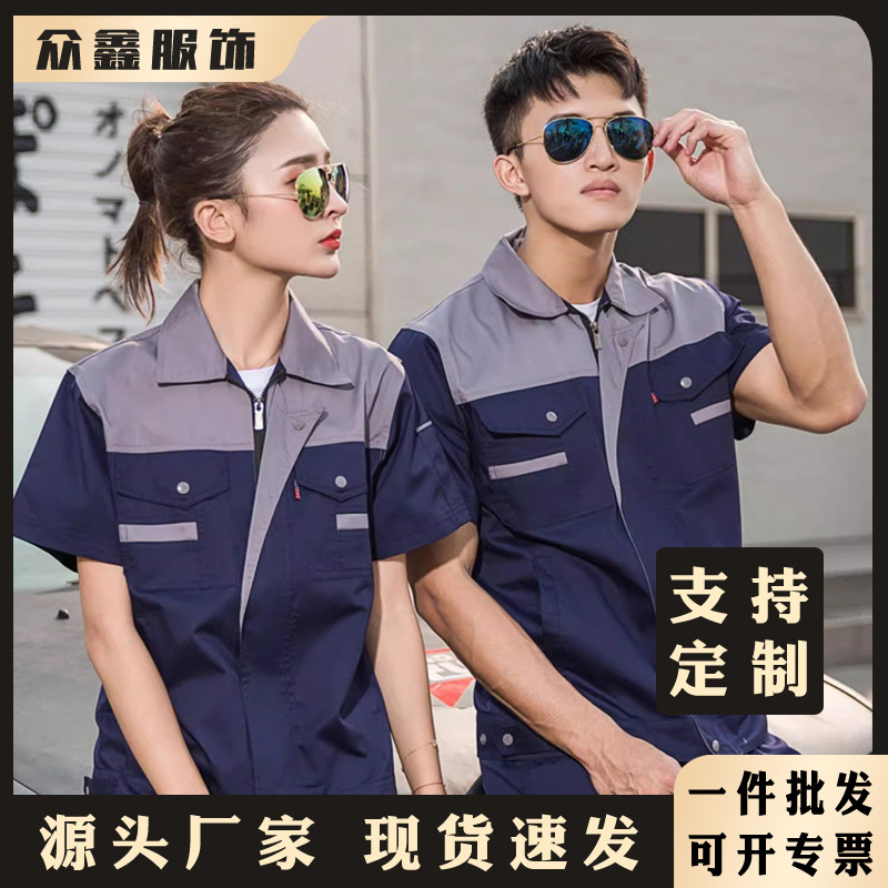 Setelan pakaian kerja pria lengan pendek, musim panas pakaian pabrik perbaikan otomatis, tipis dan tahan aus, mesin bengkel, pakaian pelindung tenaga kerja disesuaikan/dibuat