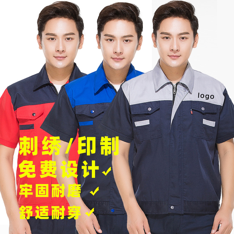 Pakaian pabrik berkerah lengan pendek, musim panas pakaian kerja logo perlindungan tenaga kerja 4s shop auto perbaikan pakaian disesuaikan cetak