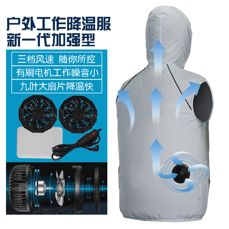 2023 musim panas luar ruangan pendingin udara pakaian rompi pria dan wanita warna solid berkerudung kipas tanpa sikat pendinginan pakaian AC Jepang