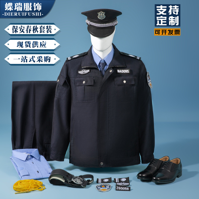 Kupu-kupu Ruixin keamanan Musim Semi dan Musim Gugur pakaian kerja setelan pria dan wanita Properti biru laut seragam keamanan tugas keamanan set lengkap