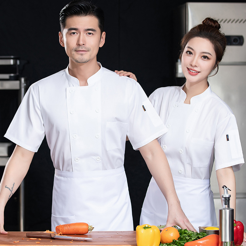 Pakaian Kerja Koki Musim Panas Pakaian Kerja Bakery Pria Wanita Kantin Dapur Hotel Makan Bernapas Lengan Pendek
