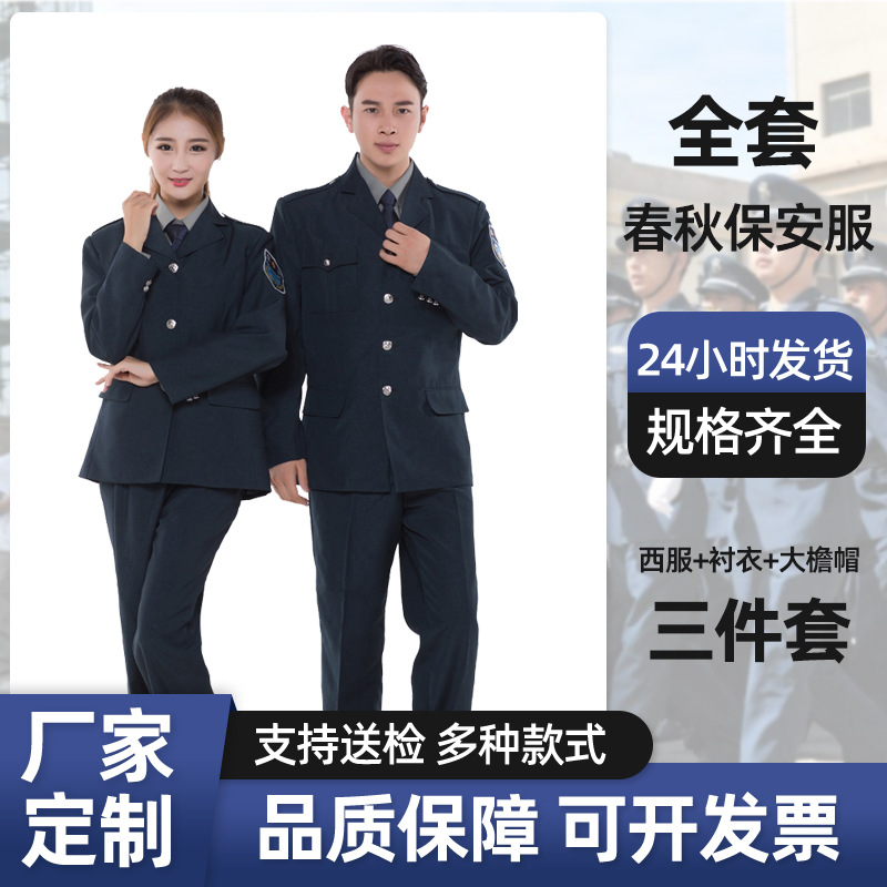 Pakaian kerja keamanan pria dan wanita, seragam seragam tugas reguler lengan panjang musim semi dan musim gugur, sesuai koordinasi keamanan, pemeliharaan, seragam keamanan