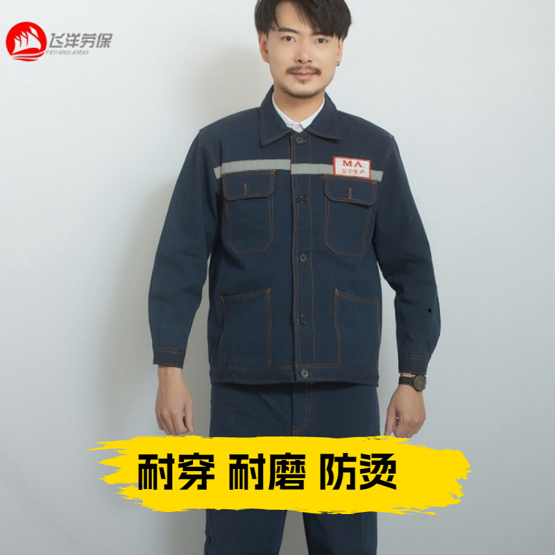 Pakaian kerja pria, musim semi dan musim gugur pakaian pelindung kerja Pria anti aus anti melepuh perbaikan las pabrik bengkel poliester pakaian pelindung tenaga kerja reflektif grosir