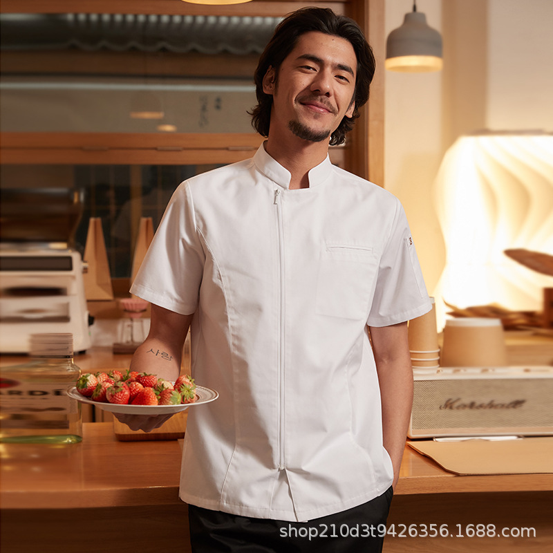 Chef Yibang YKK Pakaian Kerja Koki Ritsleting Lengan Pendek Hotel Restoran Barat Dapur Bakery Kelas Atas Musim Panas Model Baru