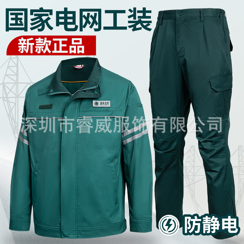 Seragam kerja baru State Grid untuk pria, gaya baru musim semi dan gugur, seragam kerja yang kuat, pakaian pelindung anti-statis untuk musim panas