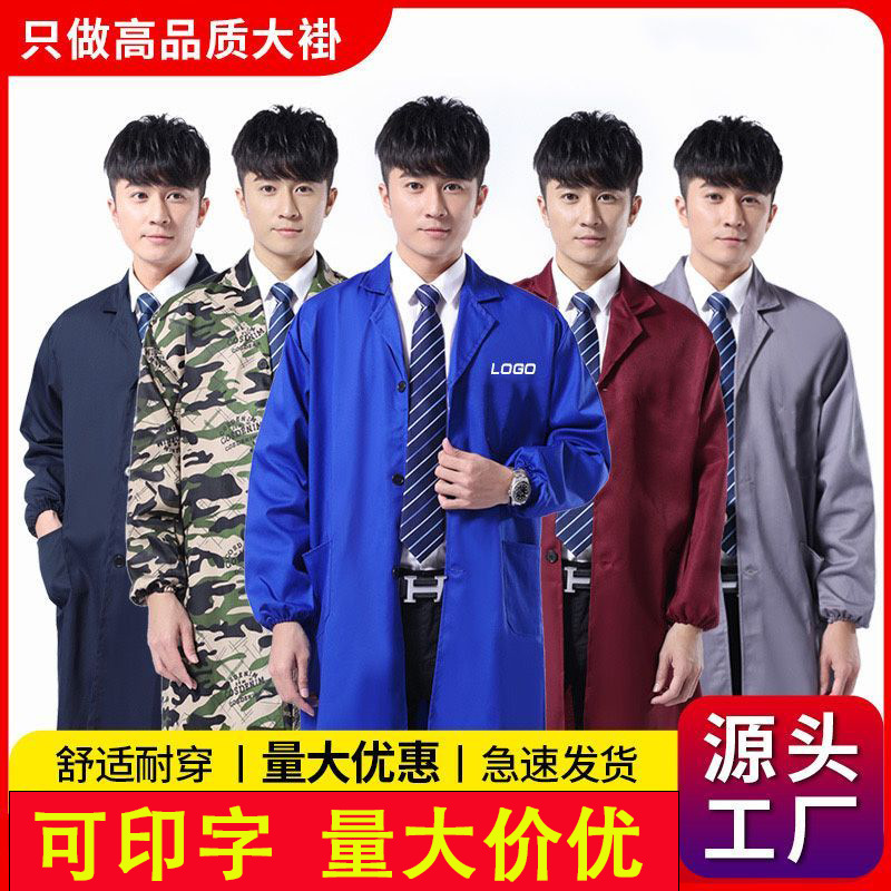 [Pabrik Penjualan Langsung] Pakaian Kerja Mantel Biru Lengan Panjang Pakaian Perlindungan Tenaga Kerja Pria Baju Mantel Kamuflase Pakaian Anti Debu Pakaian Bergerak