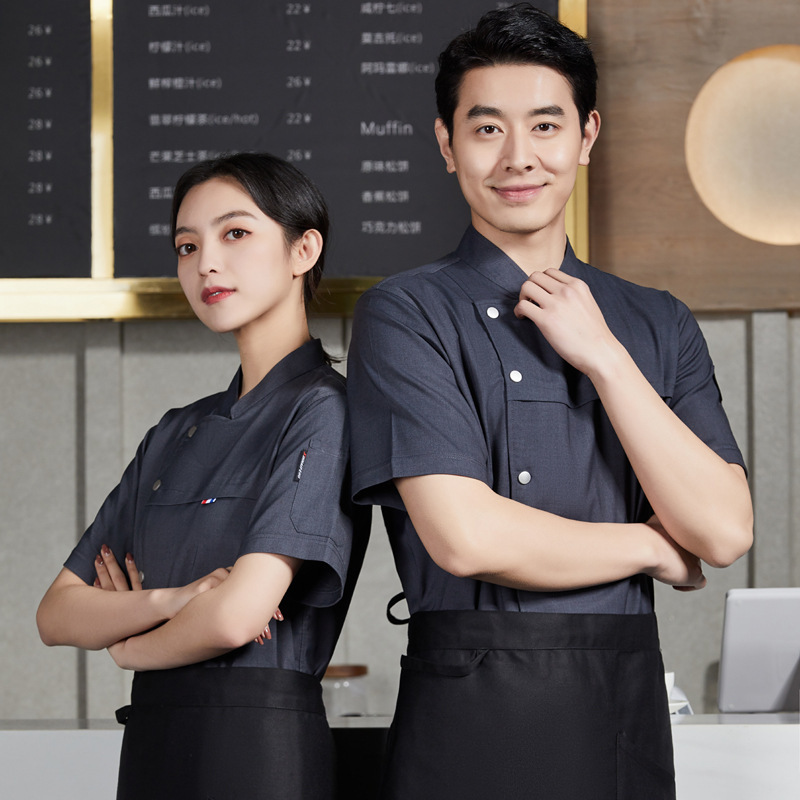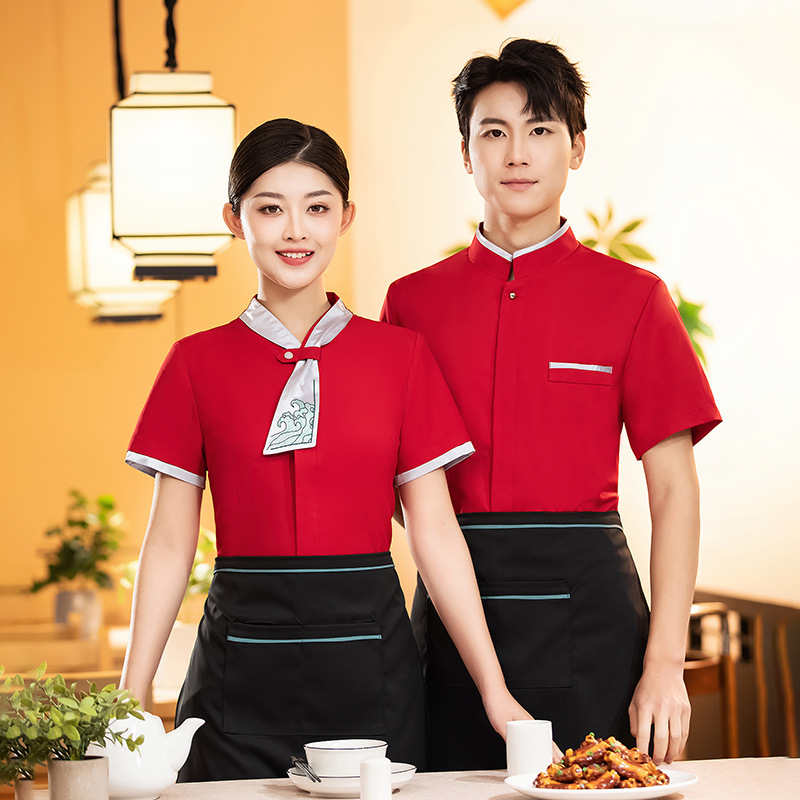 Pelayan Hotel baju kerja musim panas katering restoran Barat barbekyu hot pot restoran Cina pakaian kerja wanita lengan pendek pria