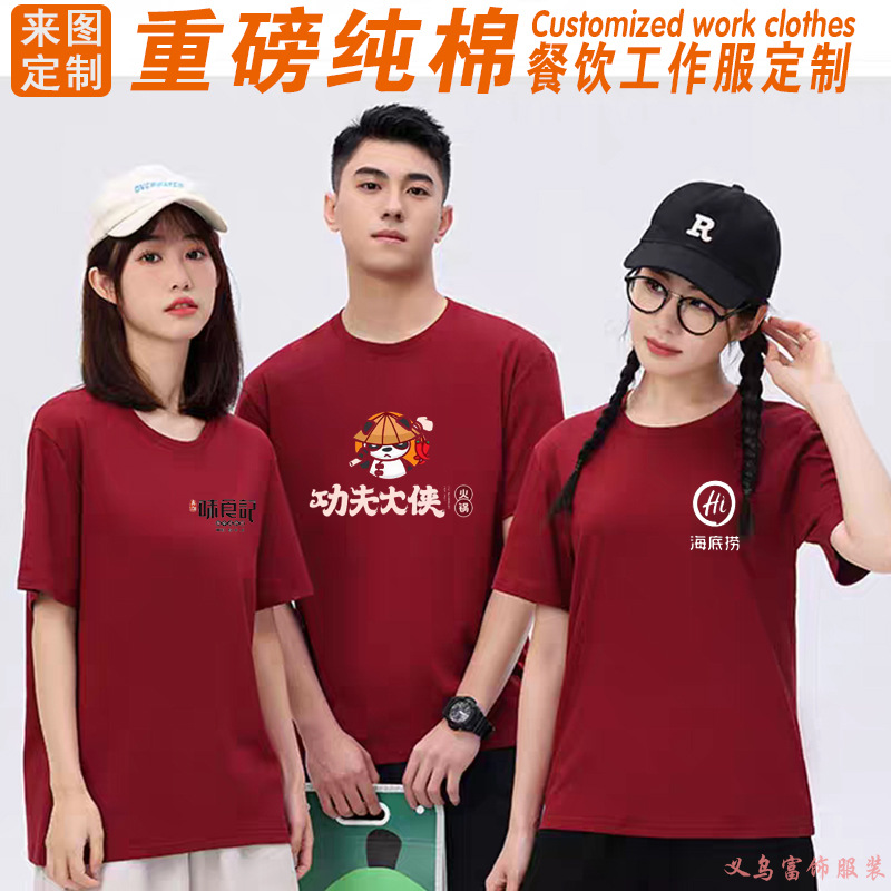 Pelayan baju kerja lengan pendek katering barbekyu hot pot restoran leher bulat kemeja iklan perkakas katun kustomisasi