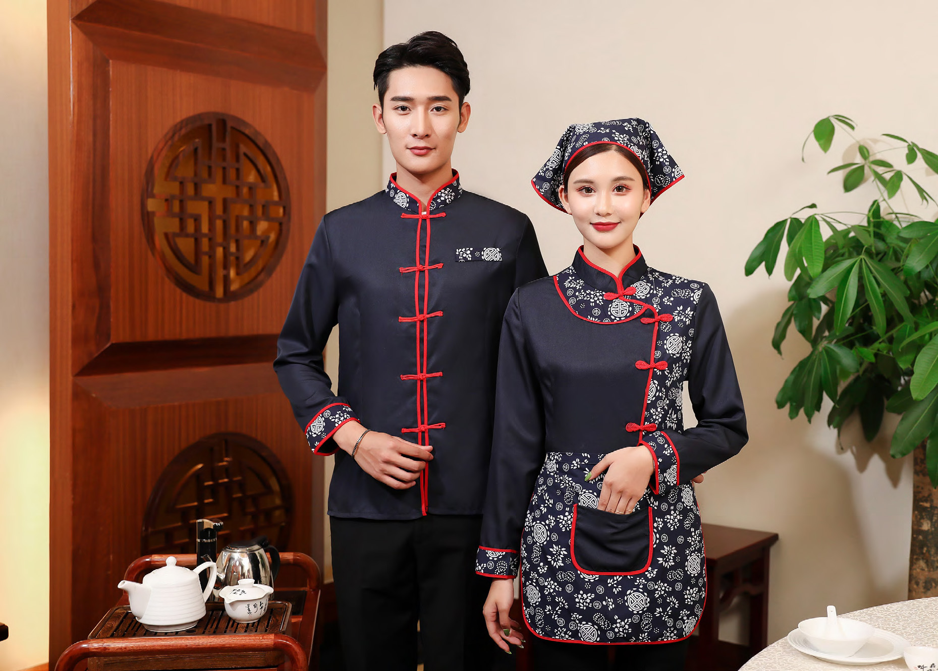 Zhenyao pelayan hotel pakaian kerja setengah lengan 3/4 baju makan restoran lengan baju panas restoran pakaian musim gugur dan musim dingin