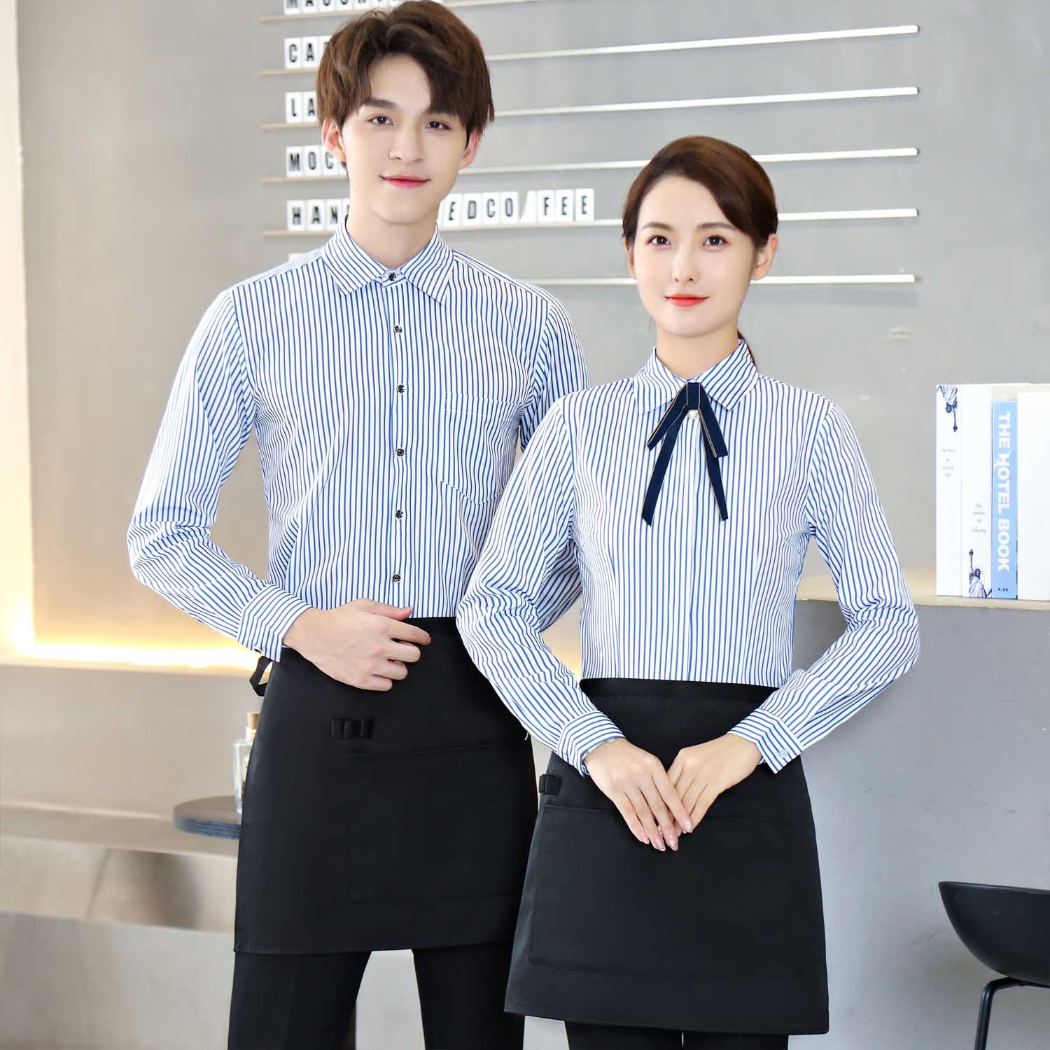 Kaus lengan panjang bergaris biru Hotel KTV katering restoran Barat kedai kopi teh susu pelayan pakaian kerja pria dan wanita