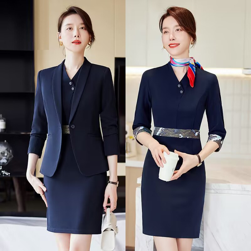Pakaian kerja meja depan Hotel toko perhiasan KTV kasir pelayan pakaian bisnis setelan pakaian wanita tiga potong pakaian musim panas
