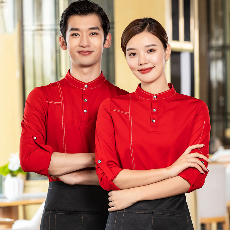 Baju kerja lengan panjang untuk Hotel, baju overall pelayan toko pot panas, baju makan hotel lengan panjang musim gugur dan musim dingin