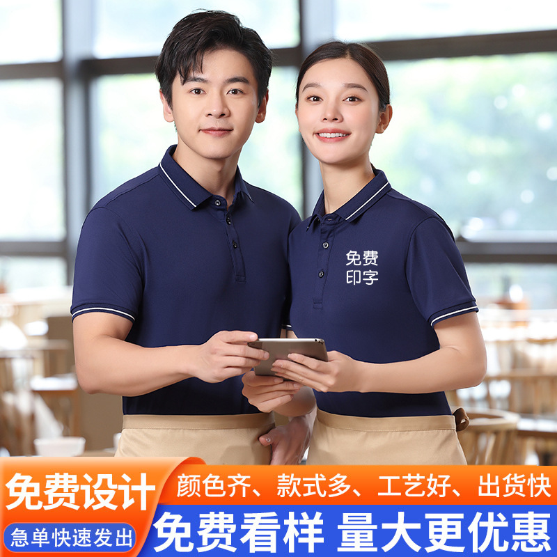 Pakaian Kerja Katering Musim Panas Kelas Atas Kerah POLO untuk Pelayan Restoran Barat Logo Hot Pot BBQ