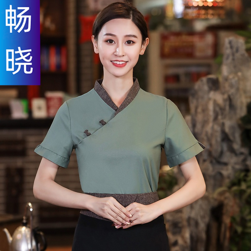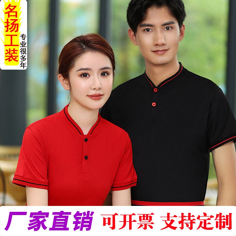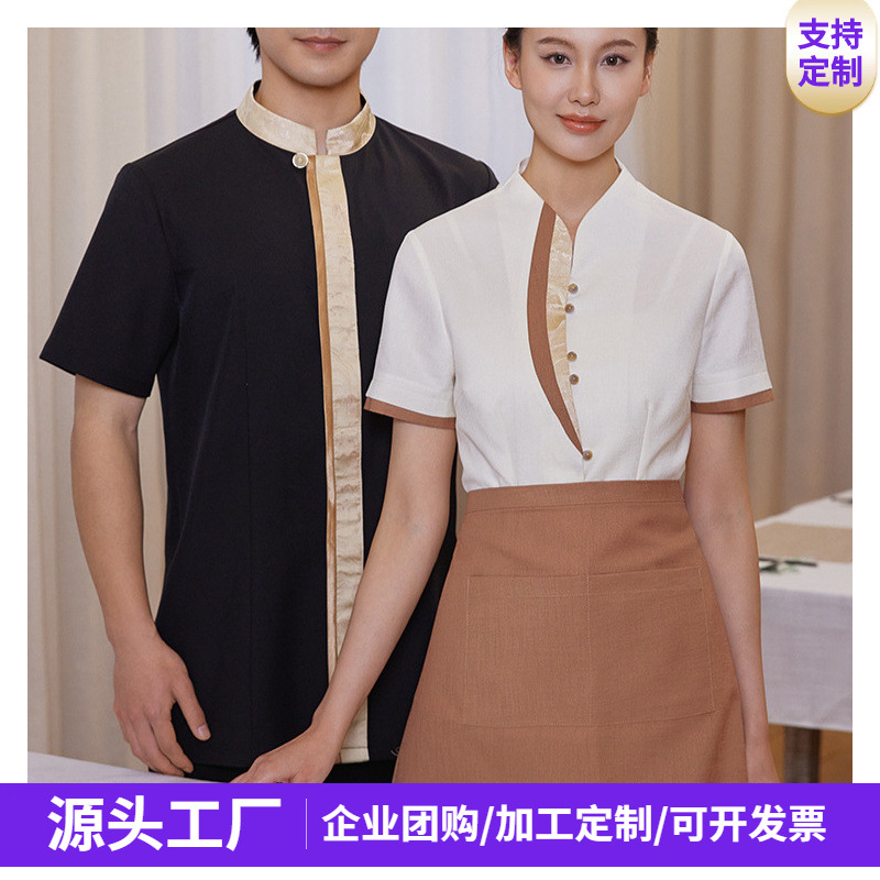 Seragam kerja waiter hotel musim panas lengan pendek, restoran Cina, restoran hot pot, resepsionis, staf teh house, pakaian katering