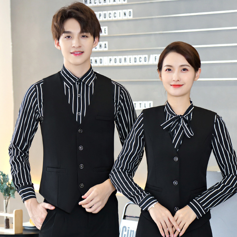 Bar ktv baju kerja pelayan pria dan wanita, lengan panjang makan depan meja setelan rompi pakaian kerja guru Taman kanak-kanak