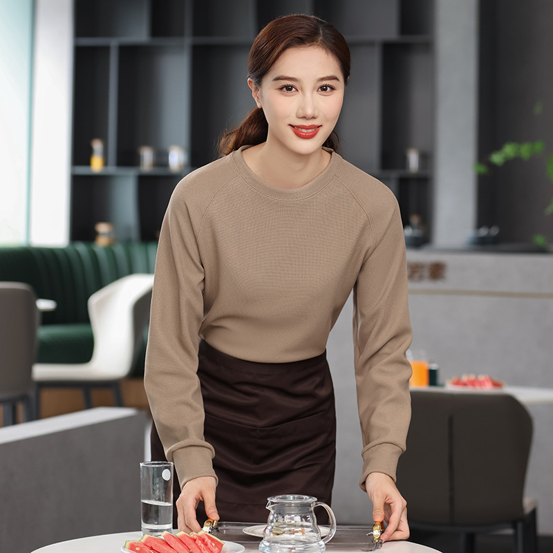 Grup katering pelayan pakaian kerja lengan panjang hotel restoran pot panas toko barbekyu kaos leher bulat musim gugur dan musim dingin beludru tebal