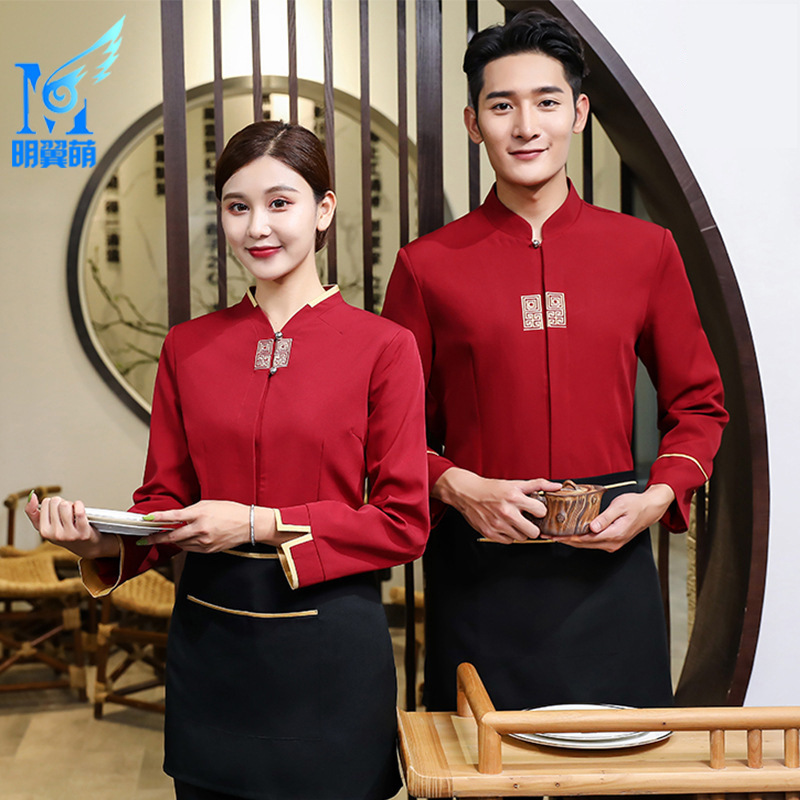 Baju kerja Hotel musim gugur dan musim dingin wanita Restoran cina rumah teh pot panas restoran pelayan pakaian kerja lengan panjang baru A02