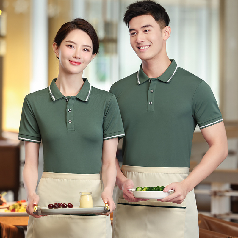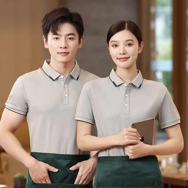 T-shirt musim panas pakaian kerja setengah lengan untuk pelayan katering pakaian susu teh restoran hot pot hotel pakaian kerja pria dan wanita cetak