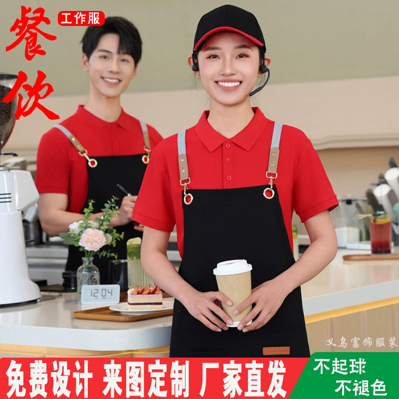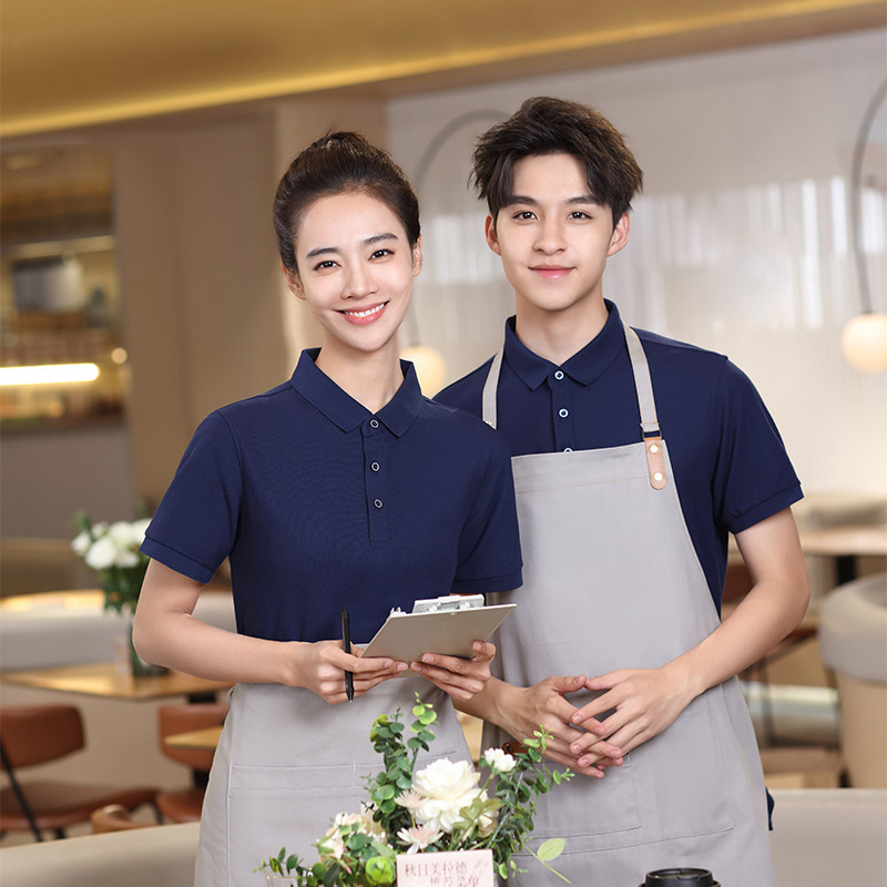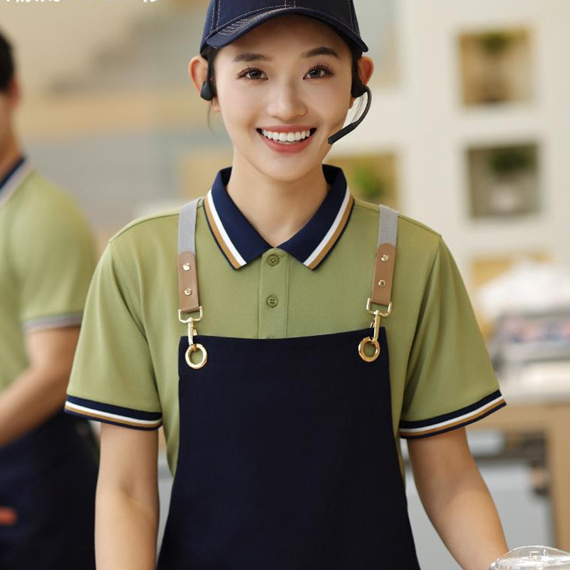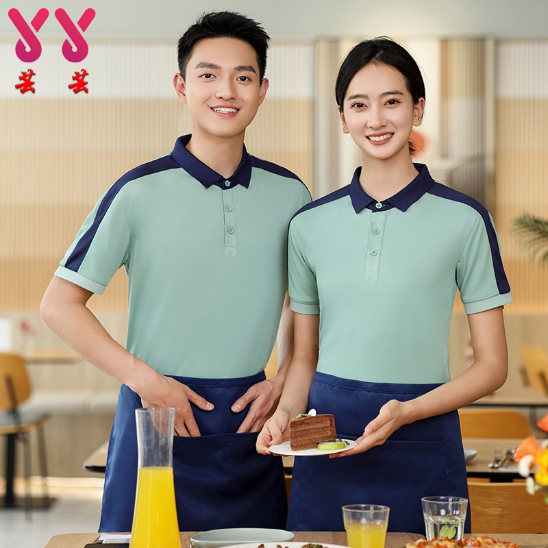 Baju kerja katering T-shirt lengan pendek, baju kerja pelayan restoran Barat Cina dan kopi hotel polo katun sutra es lengan pendek