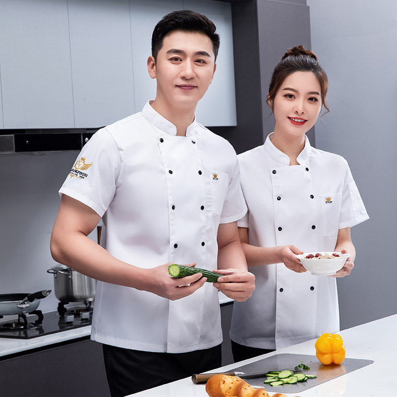 Baju koki lengan pendek musim panas, baju kerja pelayan dapur restoran, makanan ringan, toko sarapan, lengan pendek, ukuran besar