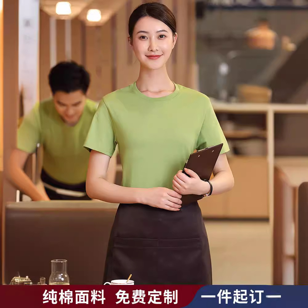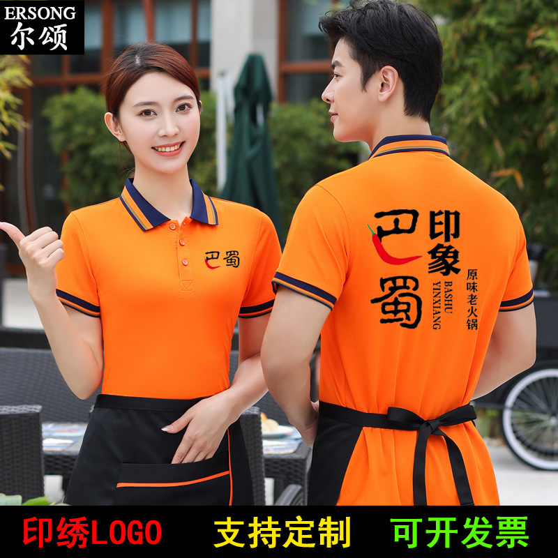 Baju kerja restoran musim panas kaos lengan pendek cetak logo hotel restoran hot pot restoran sekolah kantin pelayan pakaian kerja