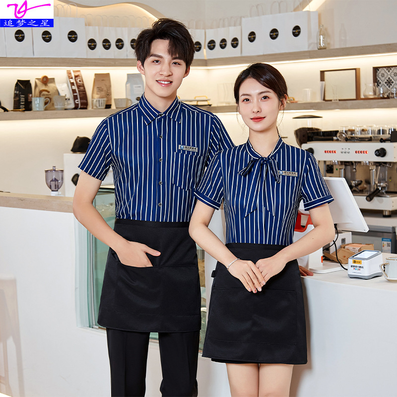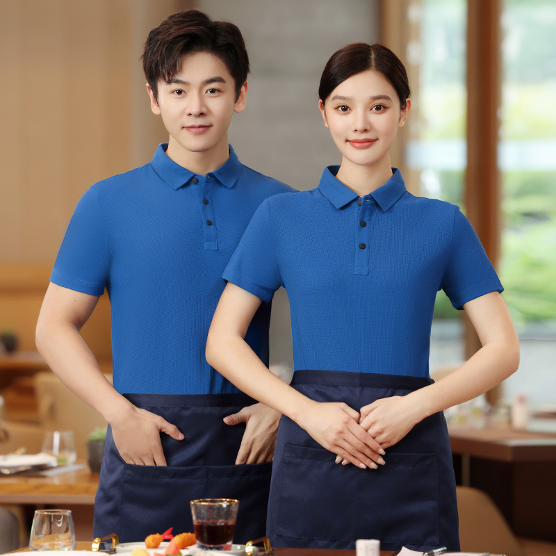 Pelayan makan musim panas lengan pendek hotel restoran depan Kantor pekerja pakaian kerja sekolah kantin pakaian kerja pria