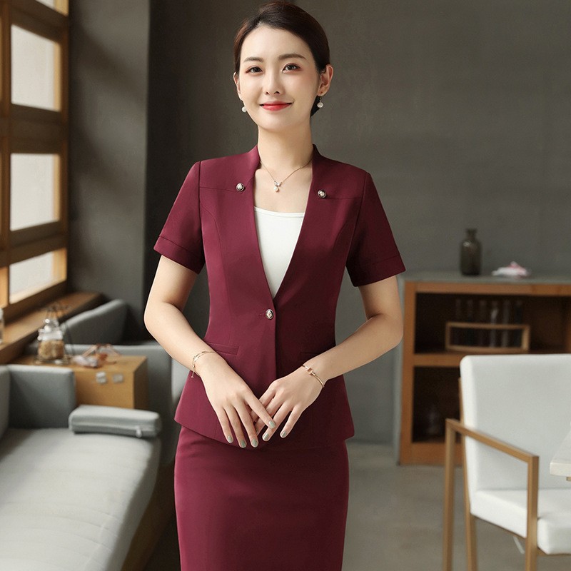 Setelan profesional lengan pendek wanita kerja temperamen kelas atas klub pelayan pakaian kerja manajer hotel penjualan departemen pakaian bisnis