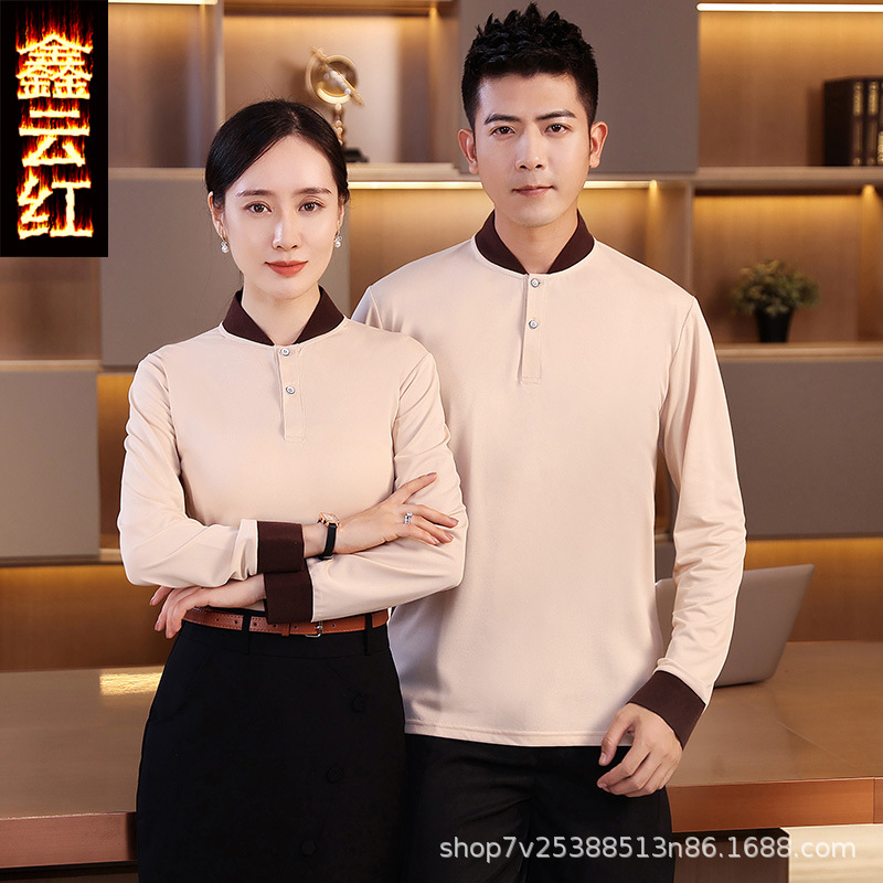 Hotel Fashion pelayan baju kerja kaos lengan panjang musim gugur pakaian katering restoran susu teh hot pot restoran wanita cetakan