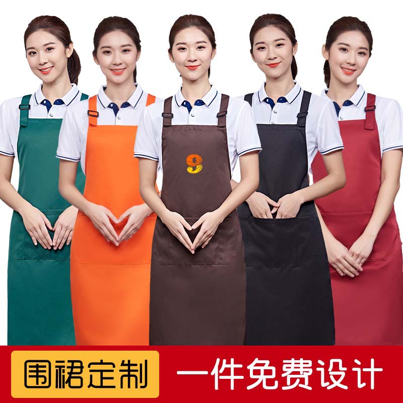 Celemek seragam kerja dengan logo khusus untuk kebun, promosi toko, anti-kotoran, kebersihan, barbeque, dan kustomisasi celemek toko teh susu.