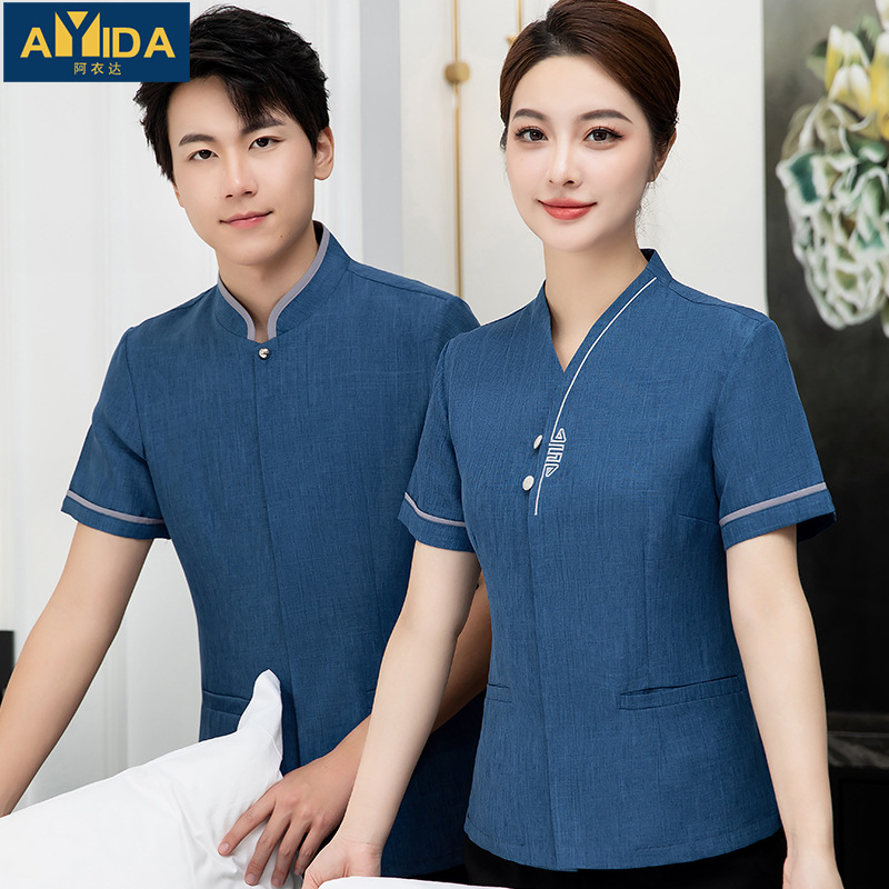 Pakaian kerja pelayan katering wanita, pakaian lengan pendek gaya Cina restoran restoran pot panas restoran hotel meja depan staf Musim Semi dan musim panas