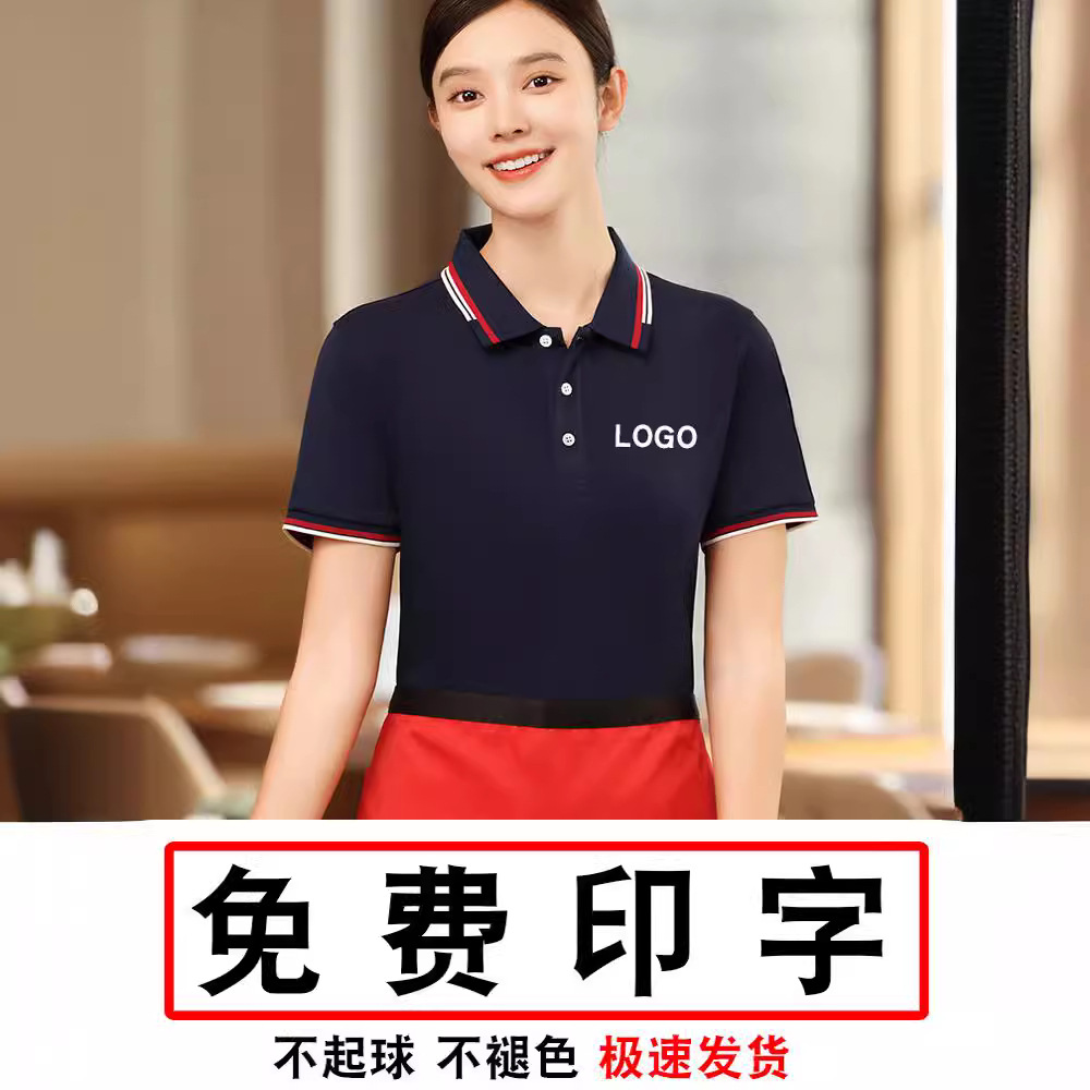 Pelayan pakaian kerja kerah lengan pendek musim panas katering teh susu pot panas Restoran Internet kopi perkakas T-shirt dicetak logo kata