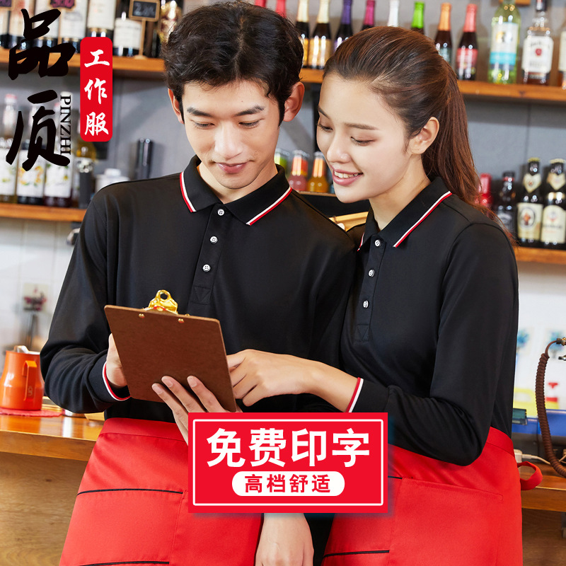 Baju kerja pelayan katering, baju kerja lengan panjang musim gugur dan musim dingin T-shirt restoran kue Barbekyu Makanan Cepat Restoran susu teh lengan pendek