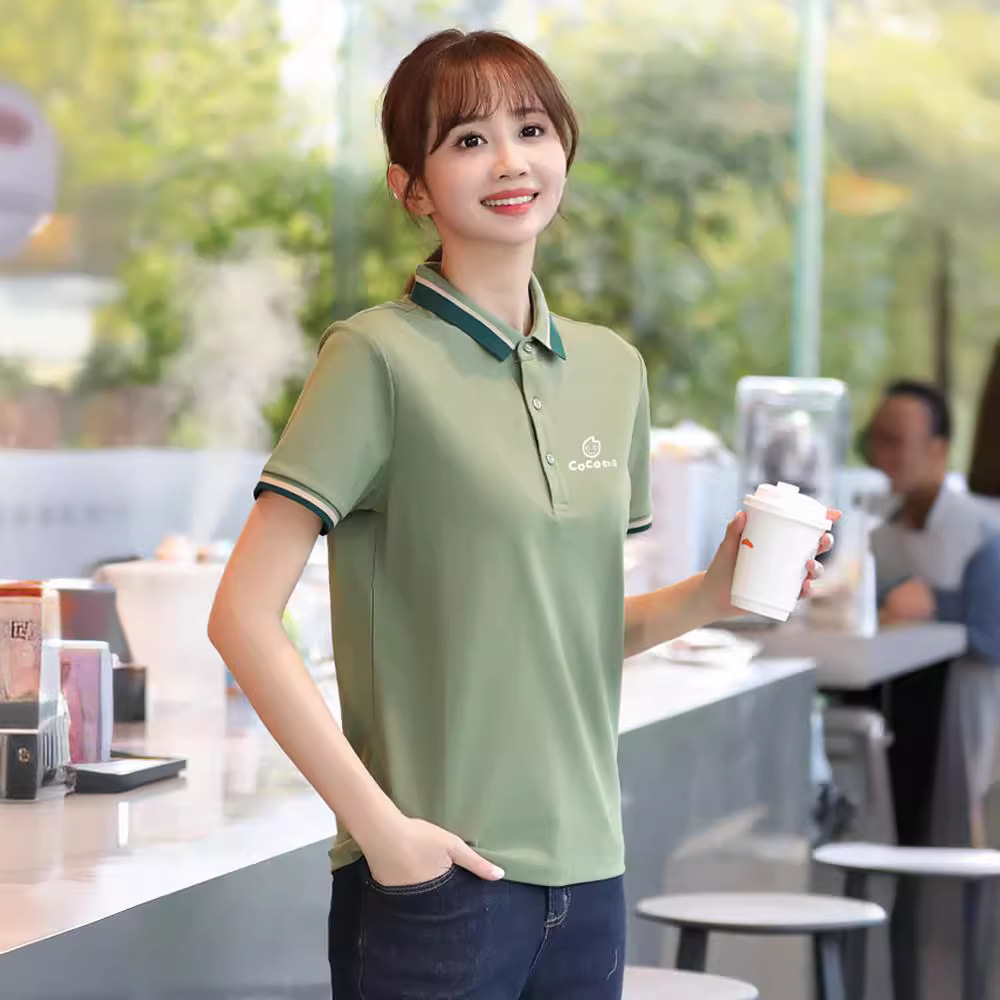 Baju kerja pelayan katering, baju kerja lengan pendek, kaus restoran Barat, pot panas, toko teh susu, meja depan, kasir, Cetak peralatan