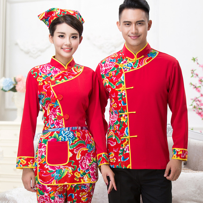 Pakaian kerja Hotel musim gugur dan musim dingin wanita restoran katering pot panas restoran pelayan rumah pertanian kain bunga besar timur laut lengan panjang