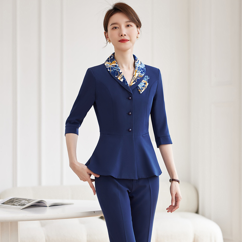 Pakaian kerja meja depan Hotel pakaian wanita musim semi dan musim gugur elegan setelan profesional Pusat Kesehatan kaki teknisi mandi pelayan pakaian kerja