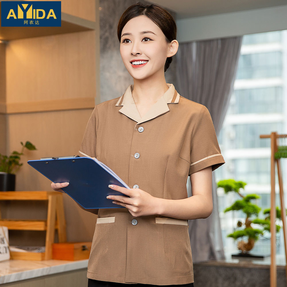 Pakaian kerja pelayan pembersih Hotel lengan pendek properti ruang tamu hotel komunitas bibi pembersih cetak disesuaikan
