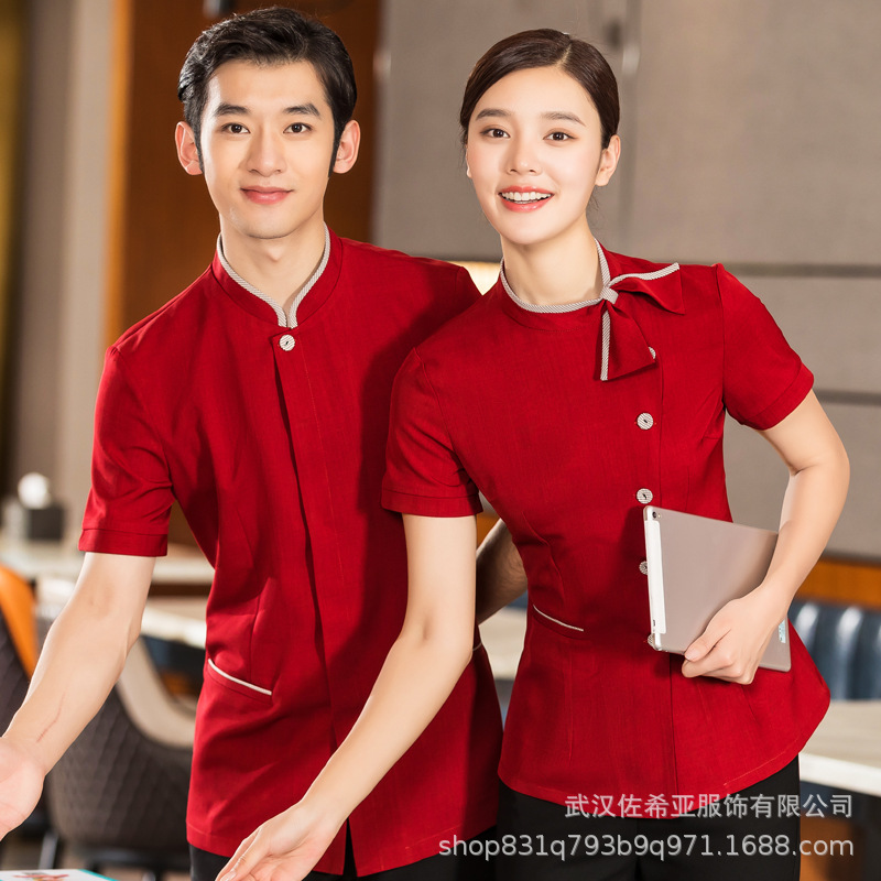 Pakaian Kerja Hotel Lengan Pendek Wanita Restoran Cina Fitur Katering Restoran Hot Pot Restoran Pakaian Pelayan Hotel Musim Panas