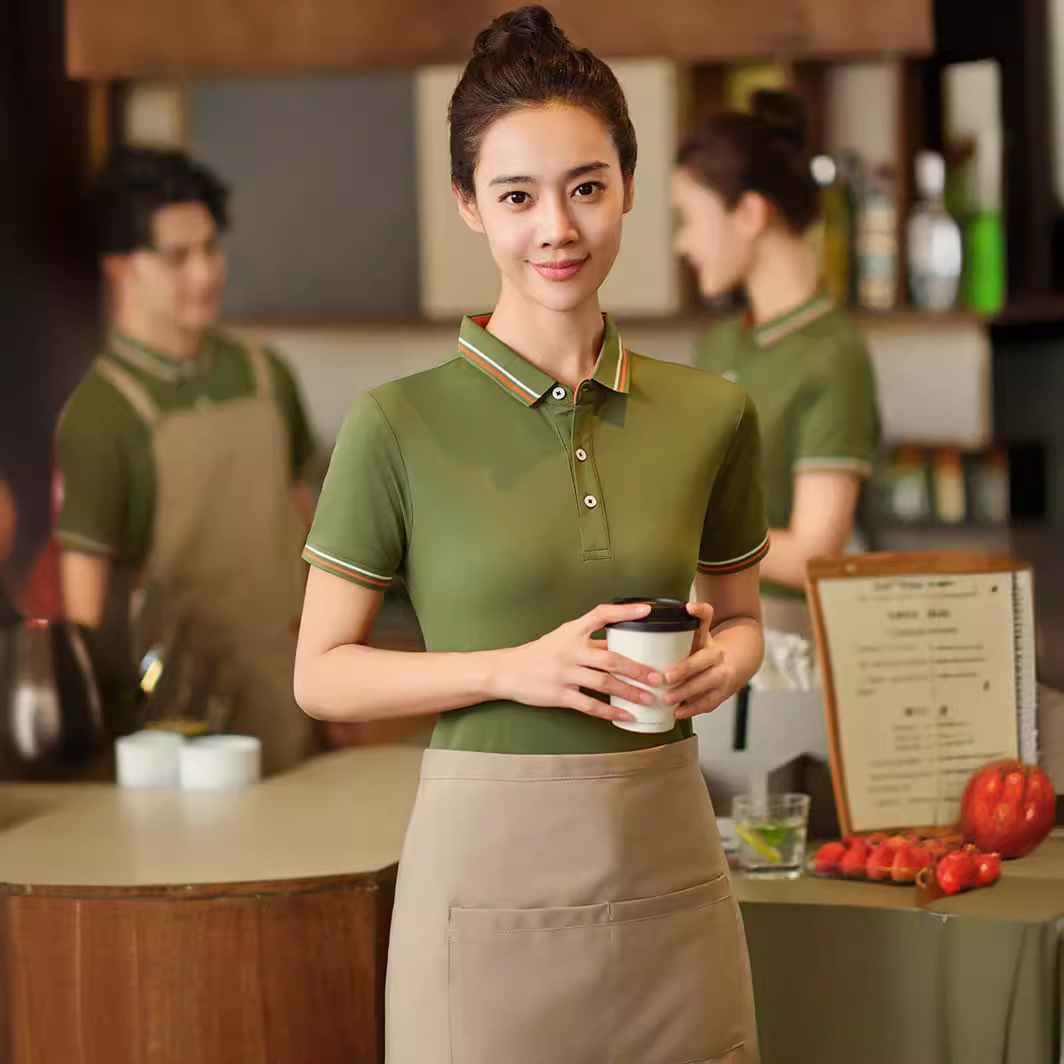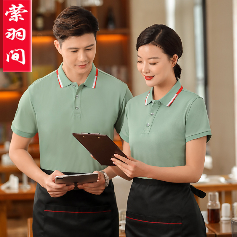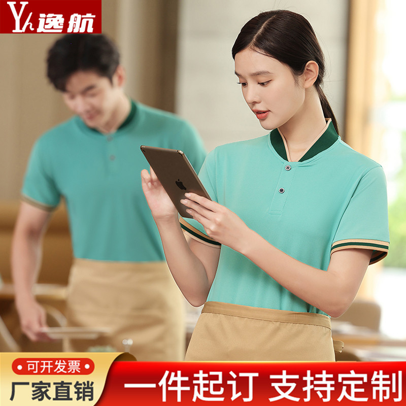 Baju kerja pelayan katering T-shirt lengan pendek musim panas restoran kantin hotel toko barbekyu supermarket baju kerja kasir