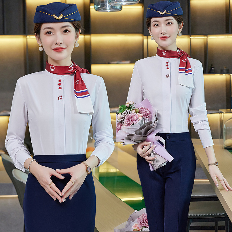 Seragam pramugari 2024 baju kerja profesional, baju lengan panjang, pakaian kerja pelayan restoran, resepsi hotel musim semi dan musim gugur