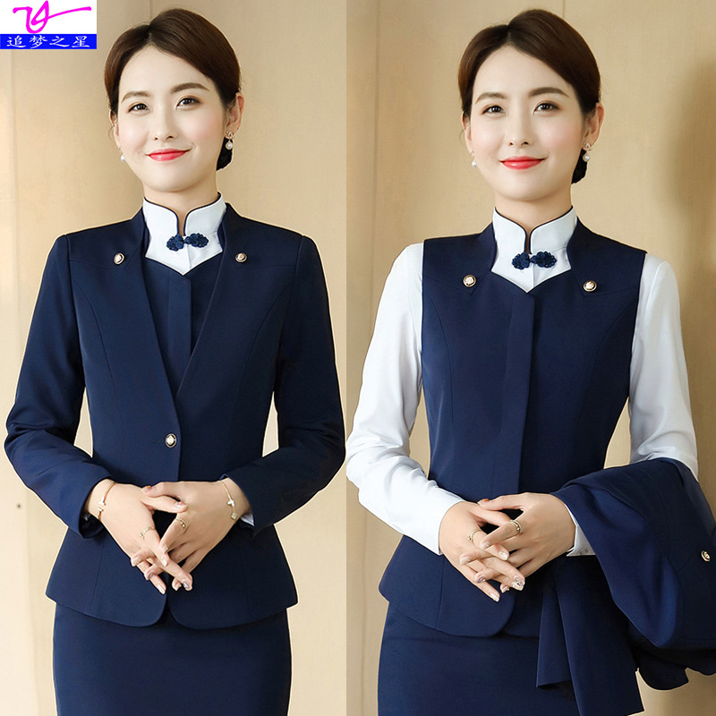 Pelayan restoran, kelas atas musim gugur dan musim dingin lengan panjang hotel meja depan penerimaan pakaian kerja salon kecantikan setelan profesional